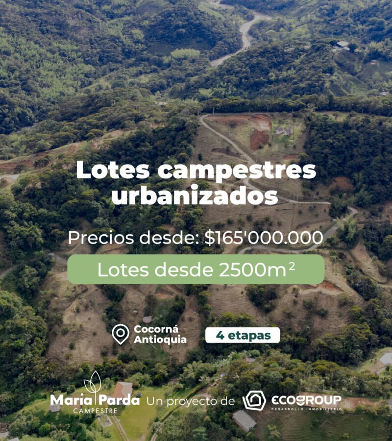 Lotes en venta urbanizados desde 2.500 m² ubicados en Cocorná - Antioquia